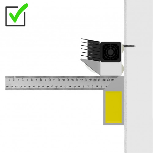 УВАГА! Опромінювач необхідно встановити на перпендикулярну підлозі площину (стіну) на висоті 2,4 метра від підлоги чи більше. Нижня площина корпусу опромінювача має бути під кутом 90° до стіни, тобто перпендикулярно їй та відповідно паралельно підлозі (рекомендується перевірити це, наприклад, будівельним кутником). Забороняється проводити роботи у верхній частині приміщення при працюючому опромінювачі, за необхідності перетину людиною лінії випромінювання – вимкнути опромінювач.
