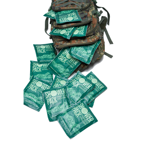 Сухой душ военный Shower Pack – это двусторонняя пенная перчатка, которой достаточно 50 мл воды, чтобы подарить ощущение свежести и чистоты всему телу. Перчатка очень хорошо пенится, а гель в ее составе – гипоаллергенный. Прекрасно подойдите военным для гигиенических процедур в полевых условиях!