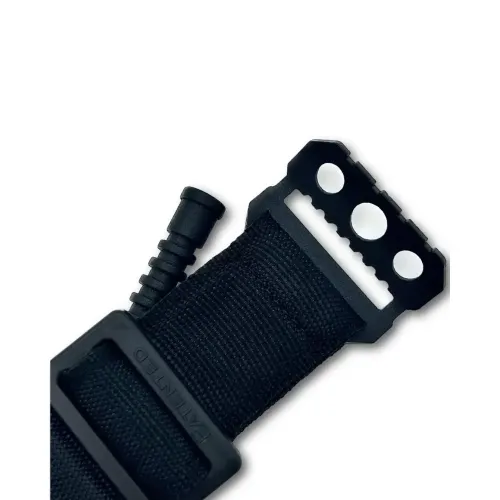 Пряжка с насечками для надежной фиксации ленты и стоп-фиксатора (сделанная из металлической фурнитуры, которая способна выдержать экстримальные физические нагрузки);