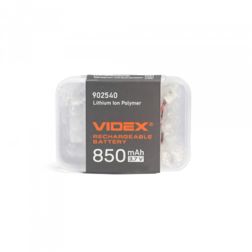 Акумулятор VIDEX VLF-B902540-85 має прямокутну форму і запакований в надійно захищеному від вологи блістері. Ємність – 850mAh. Робоча напруга – 3.7V. Розміри – 9х25х40мм. Гарантійний термін – 6 місяців.