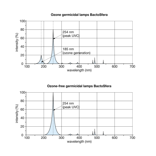 Ультрафіолетові бактерицидні лампи BactoSfera серії BS є джерелом ультрафіолетового випромінювання бактерицидної дії (спектр УФС з піковою хвилею 254 нм).