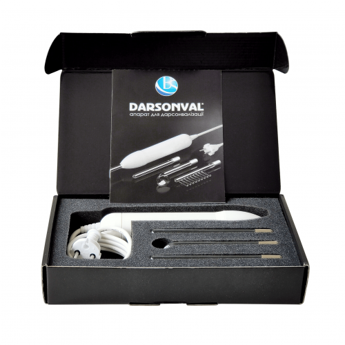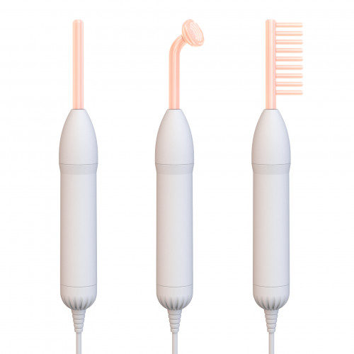 Дарсонваль комплектується трьома найнеобхіднішими насадками-електродами: «Універсал» для делікатної точкової обробки, «Коло» багатофункціональний для всього тіла, «Гребінець» для волосся.