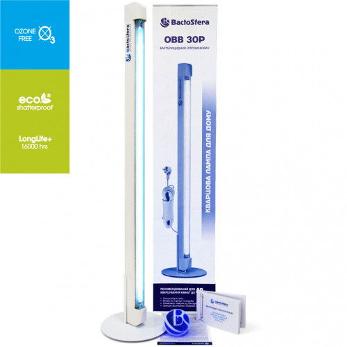 Бактерицидний опромінювач BactoSfera OBB 30P ECO – це пристрій відкритого типу, який призначений для кварцування (знезараження) повітря та поверхонь в приміщенні прямими ультрафіолетовими променями бактерицидної дії. Використовується за умови відсутності в оброблюваному приміщенні людей і тварин, рослини та інші живі організми мають бути захищені від випромінювання.