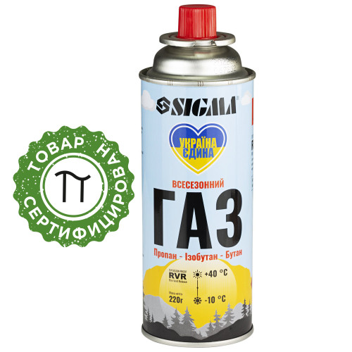 Балон газовий всесезонний 220г RVR Корея SIGMA (2901751) – це картридж, що містить суміш високоякісного пропану, ізобутану і Н-бутану.
