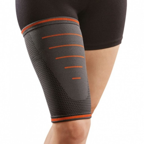 Еластичний бандаж на стегно виготовлений з трикотажного еластичного матеріалу, що має відмінні повітропроникні властивості. Матеріал дуже міцний та м'який, гарантує підвищений комфорт, щільно прилягає до ноги, забезпечує анатомічну посадку. Обережні плоскі шви дозволяють уникнути подразнення шкіри та натирання. Бездоганний матеріал характеризується підвищеною зносостійкістю при фізичних щоденних навантаженнях, легко стирається, не втрачає своїх властивостей після тривалої експлуатації.