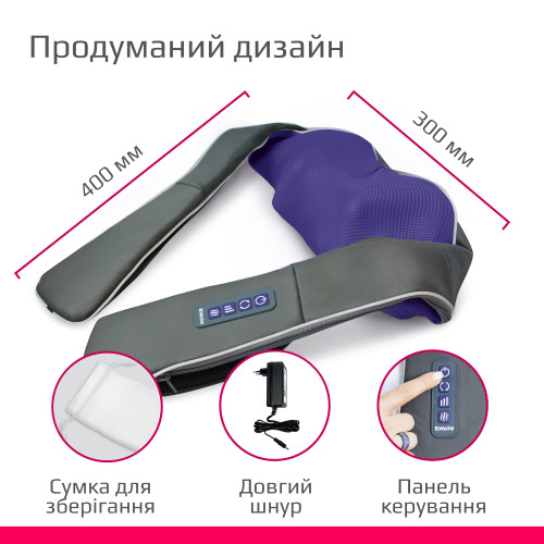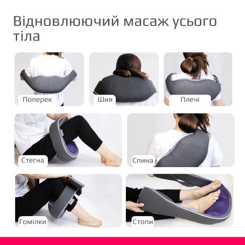 - підходить для масажу шиї, плечей, спини, литок, стегон, сідниць та ступнів;