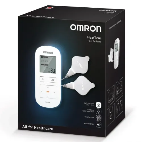 OMRON HeatTens - це болезаспокійливий засіб, призначений для зменшення та полегшення болю в м'язах та суглобах, скутості та оніміння у спині, руках, ногах, плечах та ступнях шляхом застосування електричної стимуляції нервів до поверхні шкіри поруч із місцем болю. HeatTens пропонує як заспокійливе тепло, так і знімає біль за допомогою технології TENS.