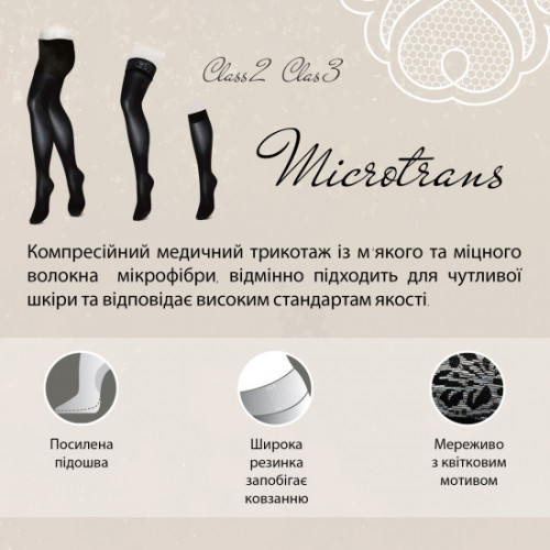 Ношення компресійних гольфів Microtrans (мікрофібра) 2 клас компресії полегшує болючі відчуття, сприяє зняттю набряків, запобігає глибокому тромбозу вен та інші серйозні розлади. Комфортні, м'які та легкі медичні компресійні гольфи відмінно підходять для чоловіків та жінок.