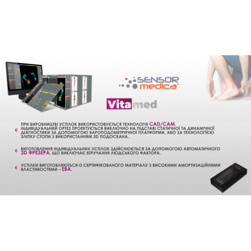 Устілки VITAMED CLASSIC PERFORATED GREY мають цілісну анатомічну основу з матеріалу EVA 40 Shr. Завдяки інноваційним технологіям устілки точно повторюють рельєф стопи. Супер комфортні устілки VITAMED CLASSIC підходять для щоденного використання. Виготовляються згідно з модернізованою італійською методикою діагностики стопи. У виробництві дотримується традиційна інноваційна техніка та технологія тривимірного фрезерування та друку. В універсальну платформу Freemed входять тисячі датчиків нового покоління, які проводять статичні, динамічні, відеографічні вимірювання. Програма виводить автоматичний звіт, який містить велику інформацію для діагностики патології та правильної інтерпретації отриманих даних у моделюванні індивідуальних устілок. Вся інформація зберігається в індивідуальних картах клієнтів, що дає можливість оцінити результативність протягом усього часу.