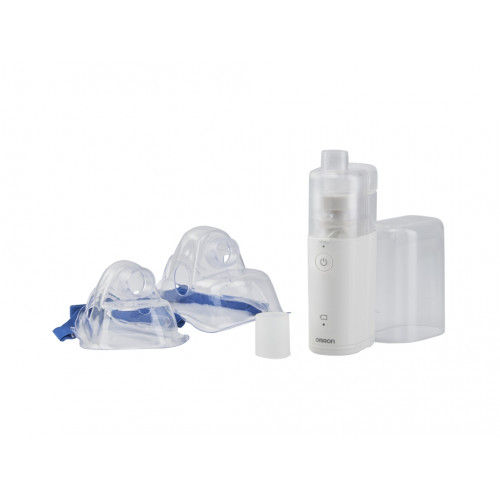 | Комплектація | Основний блок, кришка основного блока, контейнер для ліків, сітчастий розпилювач, перехідник для маски, , загубник, доросла і дитяча маски, 2 елементи живлення типу АА/LR6, сумка для зберігання і перенесення, інструкція по експлуатації приладу, гарантійний талон. |