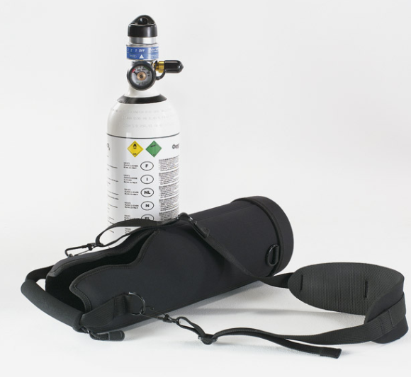 Після заправки кисневого балона пацієнт може покласти його в сумку і захопити з собою.