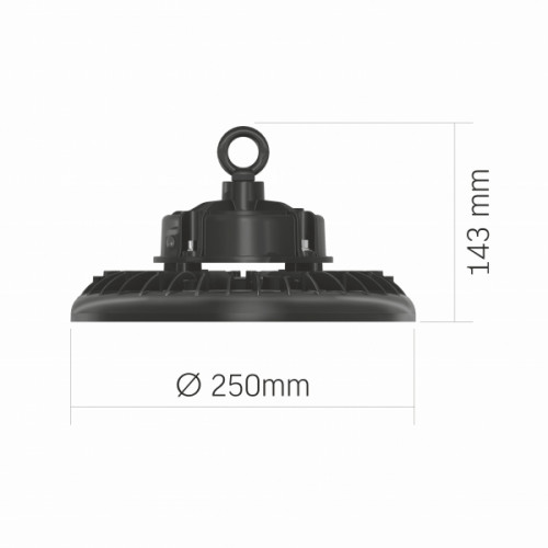 Світильник High Bay володіє високим захистом від ударів IK07 і високим ступенем пиле - та вологозахисту IP65, такі технічні параметри забезпечують безпечне використання приладу в приміщеннях з підвищеною вологістю або під відкритим небом.