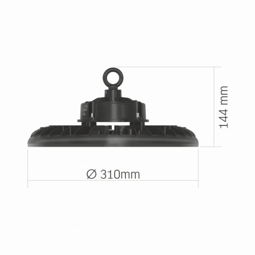 Світильник High Bay володіє високим захистом від ударів IK07 і високим ступенем пиле - та вологозахисту IP65, такі технічні параметри забезпечують безпечне використання приладу в приміщеннях з підвищеною вологістю або під відкритим небом.