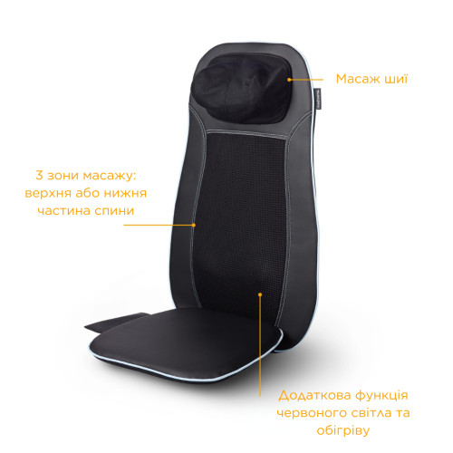 • три зони масажу шиацу на вибір: загальний, верхня або нижня частина спини;