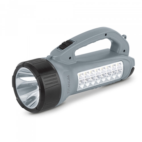 Сонячний пошуковий ліхтар з акумулятором «Titanum» призначений для використання у темну пору доби або в приміщеннях без освітлення. Має зручну ергономічну ручку для переносу, вбудовану сонячну панель та працює від акумулятора. Особливістю даної моделі є два джерела світла: переднє (основне) та бокове, яке використовують переважно для ближнього освітлення. Підходить для застосування у побуті, риболовлі чи туризмі.