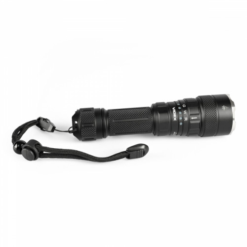 | Комплектація | Акумулятор, кліпса, шнур на руку, зарядний кабель, запасні ущільнювачі, запасна накладка на кнопку, ущільнювач під АКБ 18650, документація |