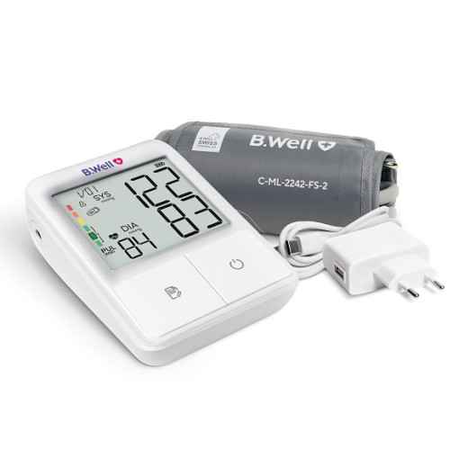 B.Well MED-50 – це повністю автоматичний прилад для вимірювання артеріального тиску та пульсу на плечі, створений для комфортного використання вдома. Висока точність, анатомічна манжета, пам'ять на 100 результатів та індикатори правильності вимірювання роблять його надійним помічником у моніторингу серцево‑судинного здоров’я.