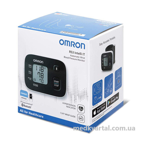 Автоматичний тонометр з манжетою на зап'ясті OMRON RS3 Intelli IT зручний тонометр призначається для стильних і активних молодих людей, які стежать за станом свого здоров'я в будь-якому місці. Завдяки своїм компактним розмірам прилад легко зберігати й брати з собою в гості або в поїздки. Попри свої невеликі розміри, прилад володіє всіма необхідними функціями для того, щоб кожен день з високою точністю проводити моніторинг тиску. Також RS3 Intelli IT оснащений Bluetooth для збереження даних на Ваш смартфон завдяки додатку OMRON Connect.