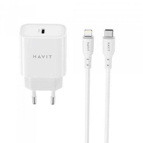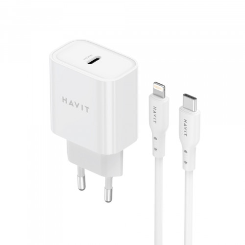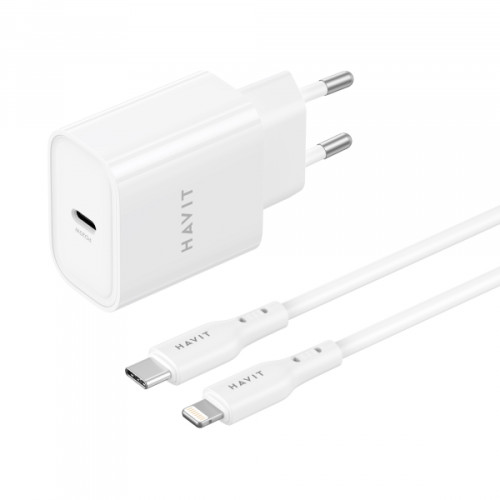 В комплекті разом із зарядним пристроєм входить кабель USB-C на Lightning довжиною 1м, який підтримує протокол швидкої зарядки PD30W, що дозволяє заряджати більшість сучасних гаджетів Apple (IPhone, IPad та ін.).